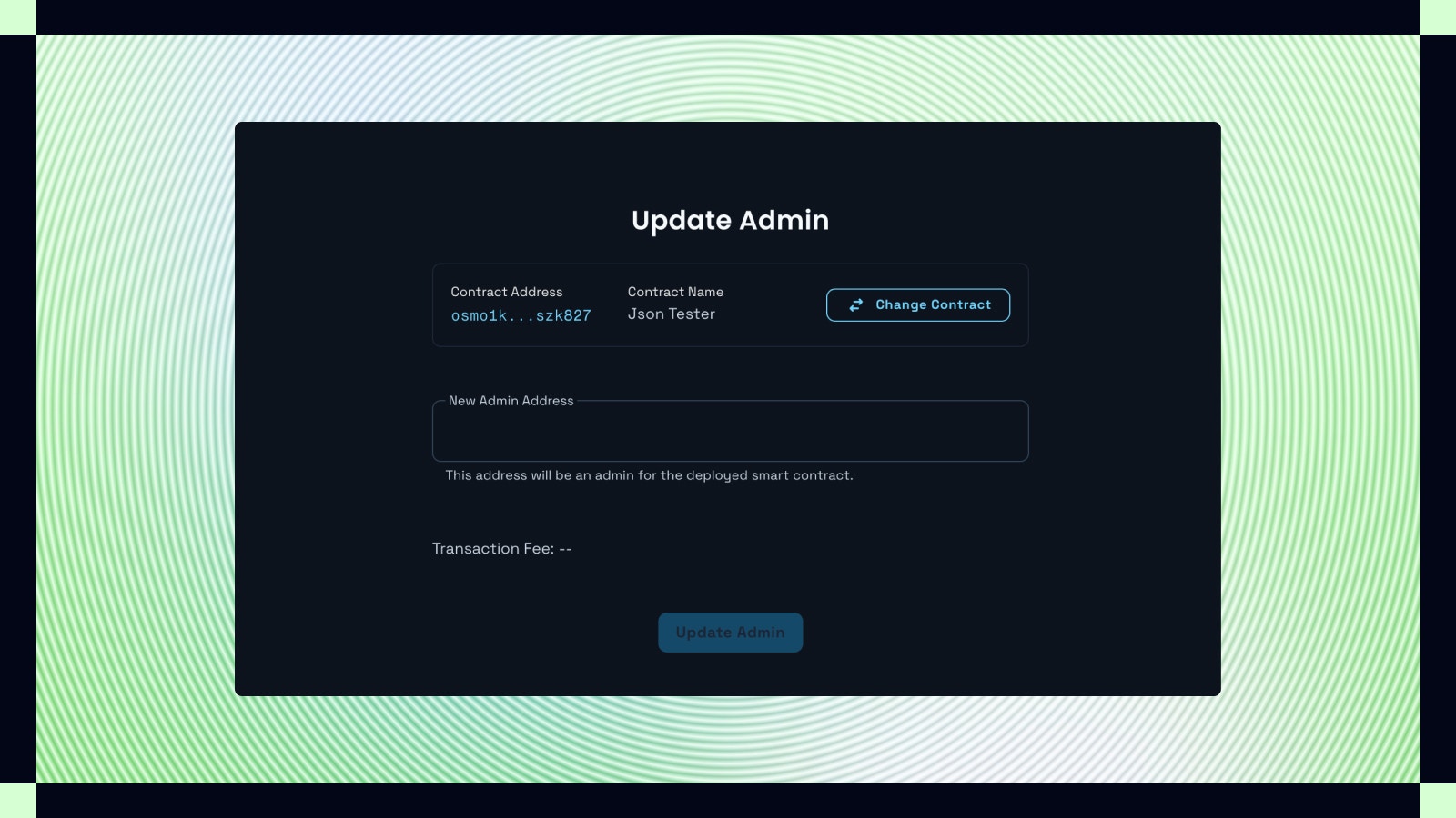 - Selecting the Contract: Select the contract to update the admin for.