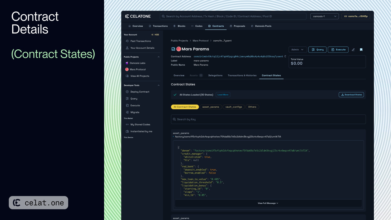 - Loaded States: Celatone displays the 100 most recent states of a contract by default. If not all states are visible after this initial load, users can select the “Load more” option to retrieve additional sets of 100 states until the full state data of the contract is accessible on the platform.