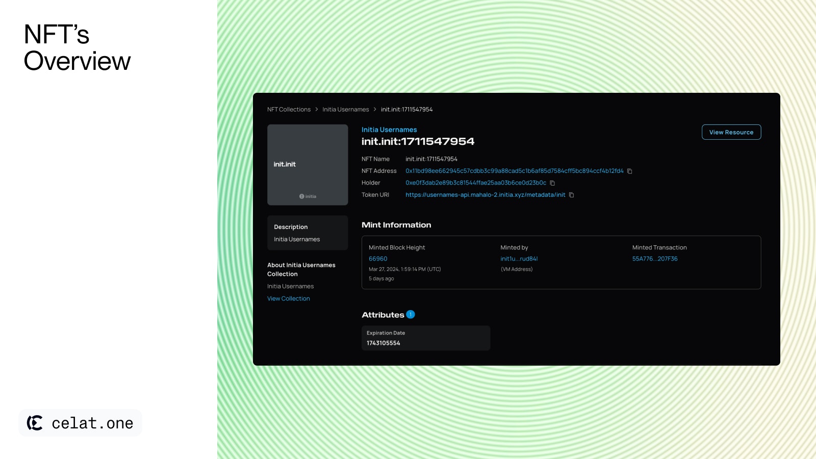 - Holder of the NFT: Display the account address that is currently holding the NFT.