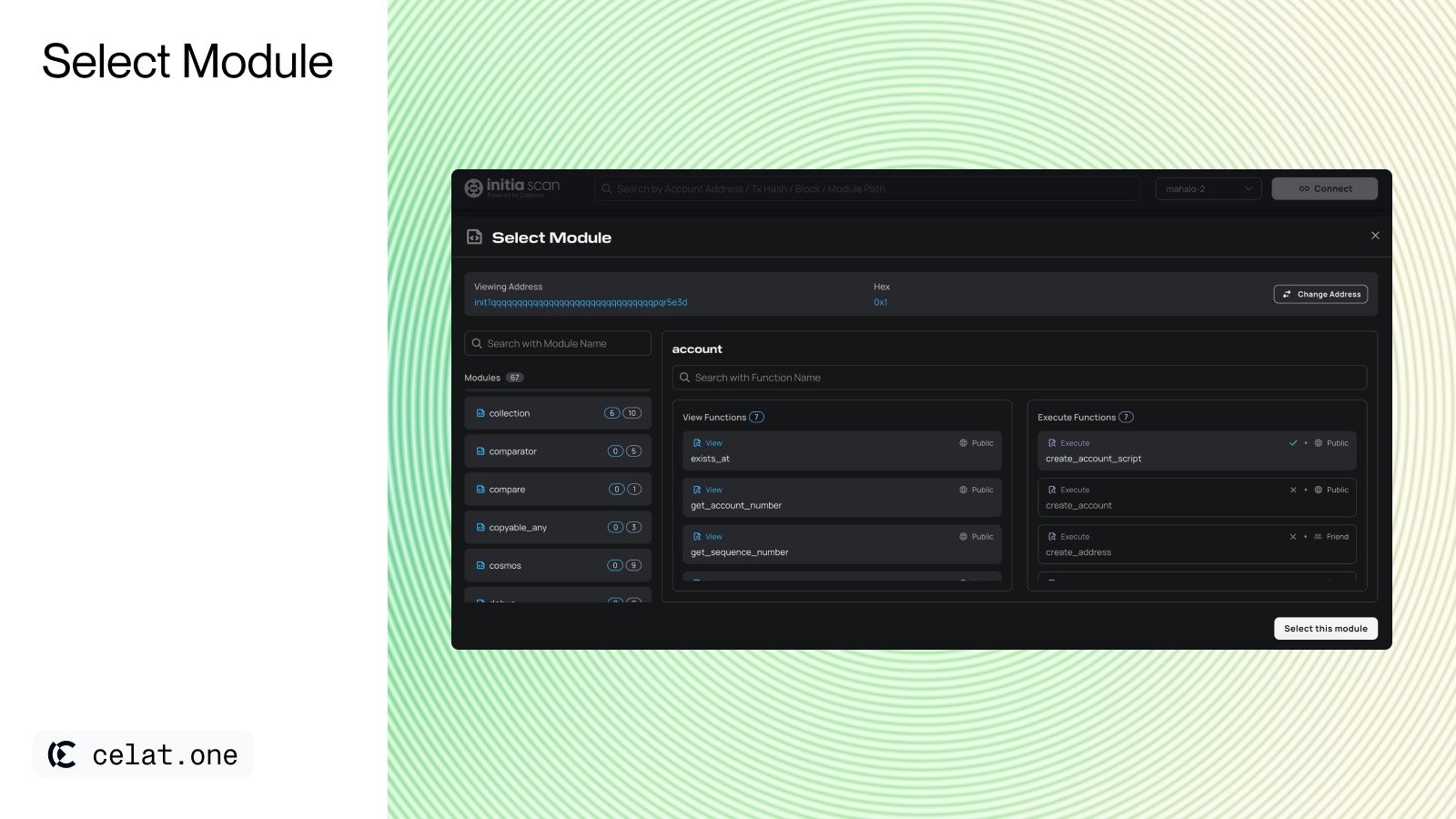 - You can either select the function or click on “Select Module” to proceed to interact with the module