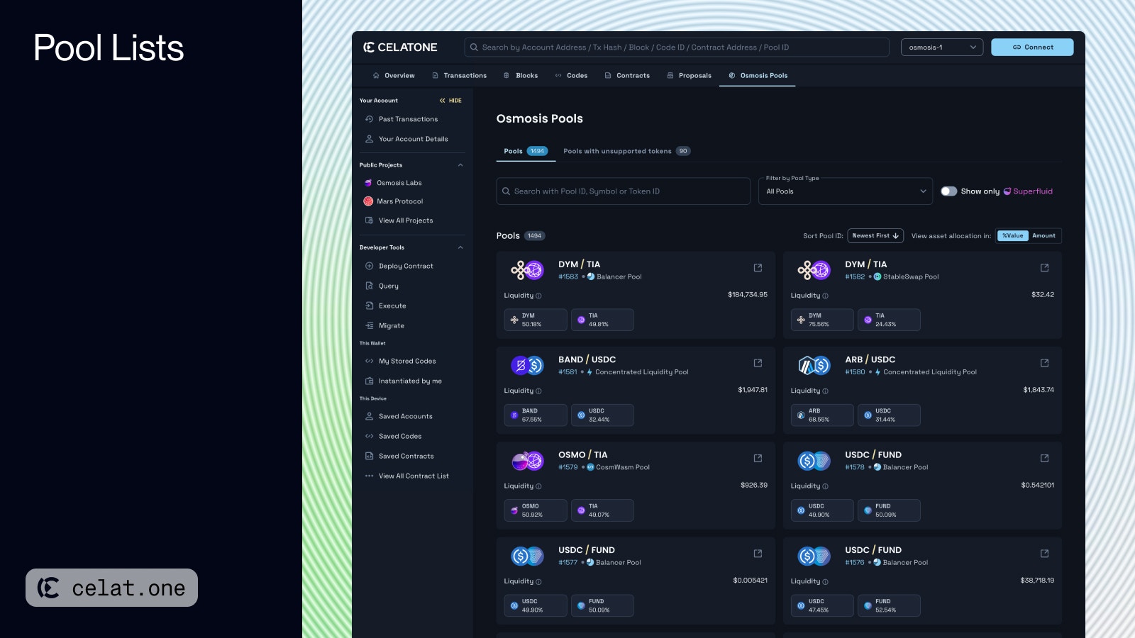 - Superfluid Staking: You can filter to see only Superfluid Staking enabled pool. Read more about Superfluid Staking